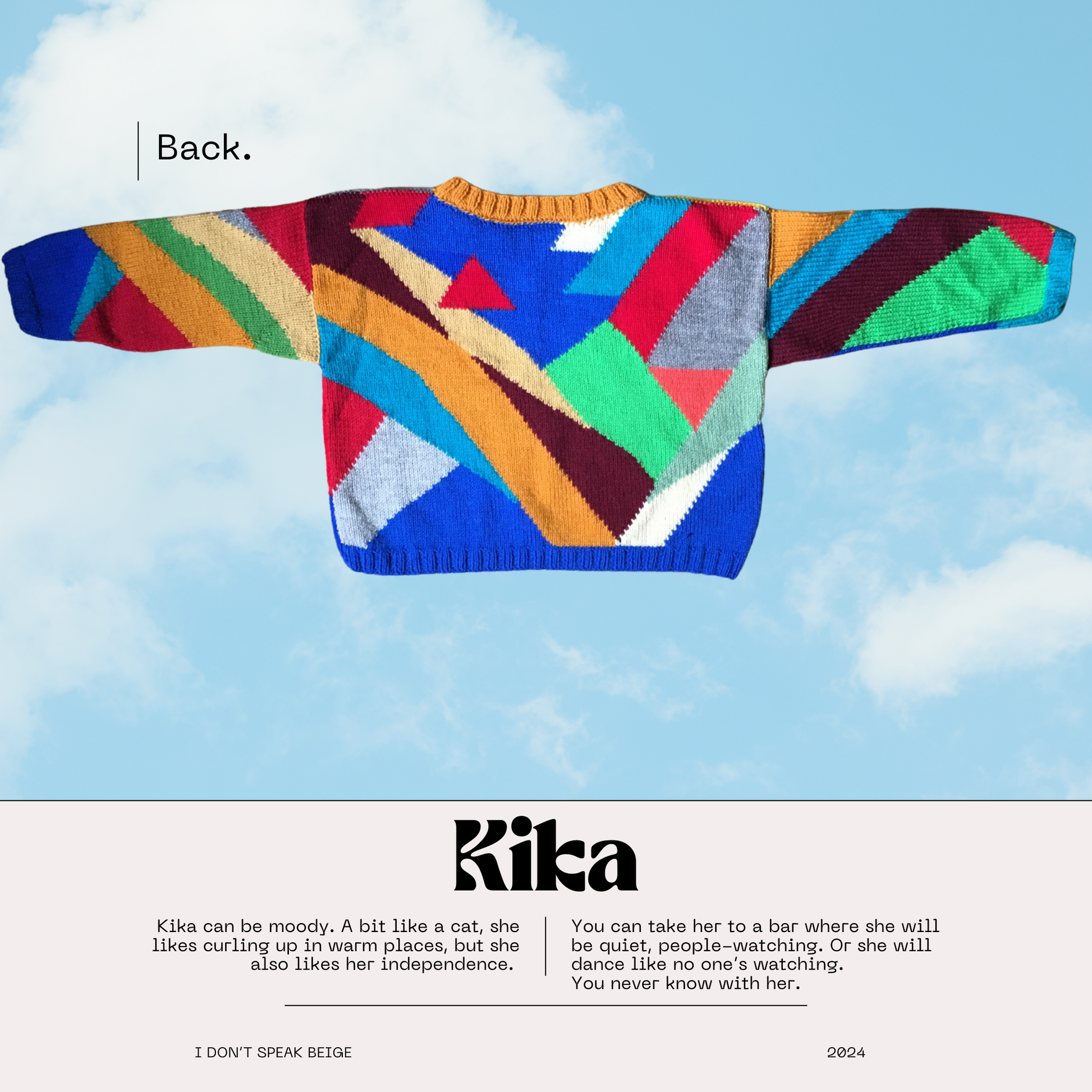Suitable for XS/S-sized adult individuals. Kika is a crop sweater, it goes up to your waist.